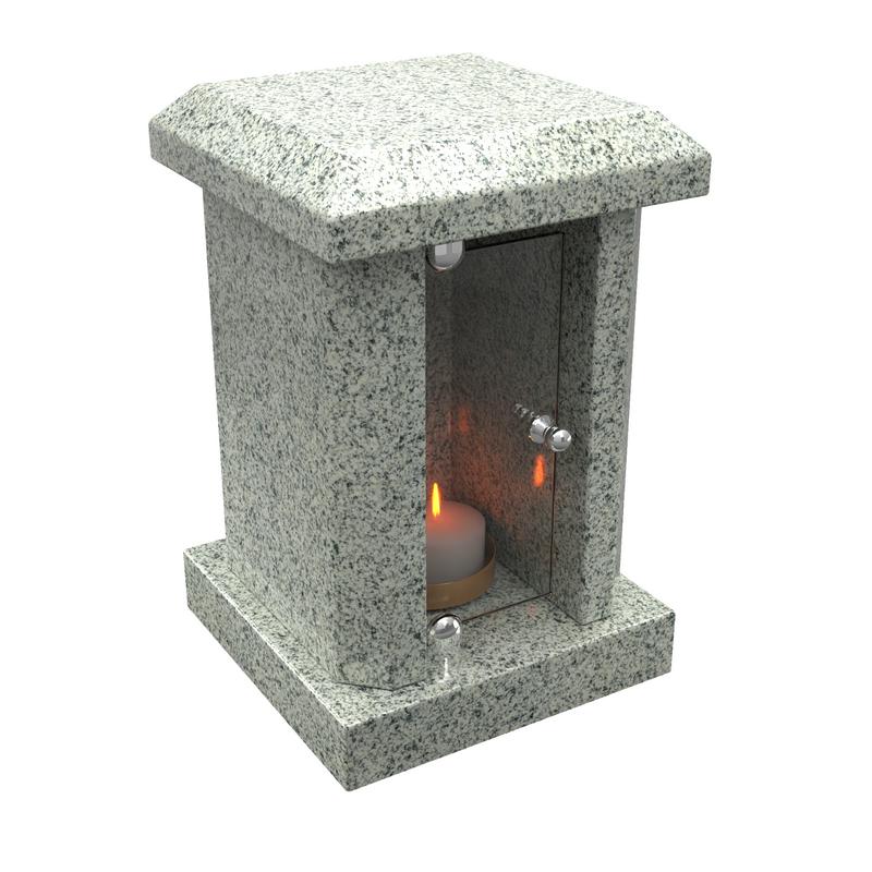 Прямоугольная лампада из натурального гранита — надёжный и эстетичный элемент для оформления мемориалов и могил. Изготавливается из прочного гранита более чем с 20 месторождений, включая тёмные, светлые и цветные оттенки. Стеклянная дверца защищает свечу от осадков и ветра.